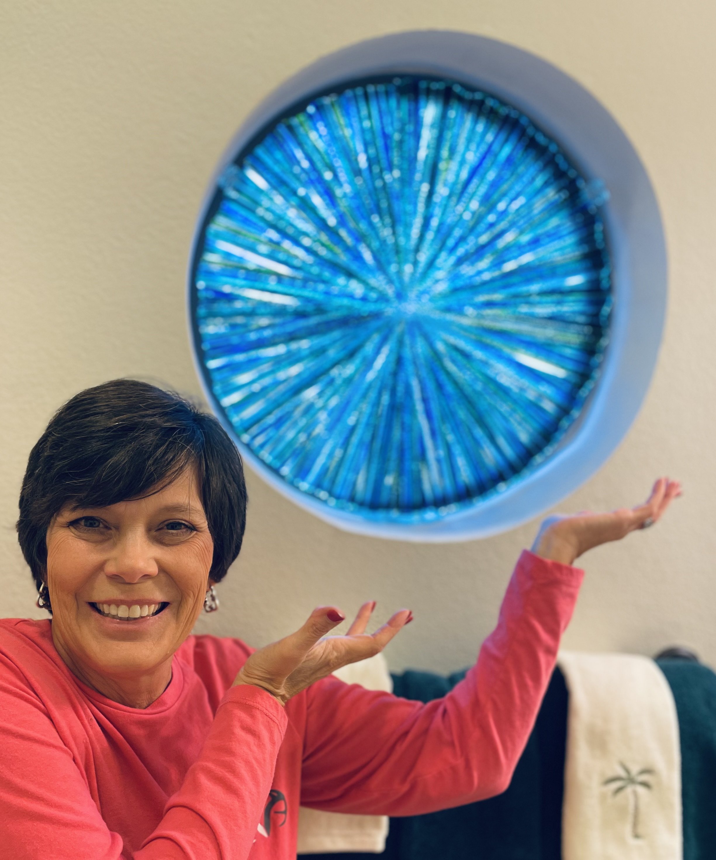 Through light, color, and form, the glass invites reflection on the quiet power of balance—reminding us that true vitality comes when we stretch toward possibility while staying rooted in ourselves.
